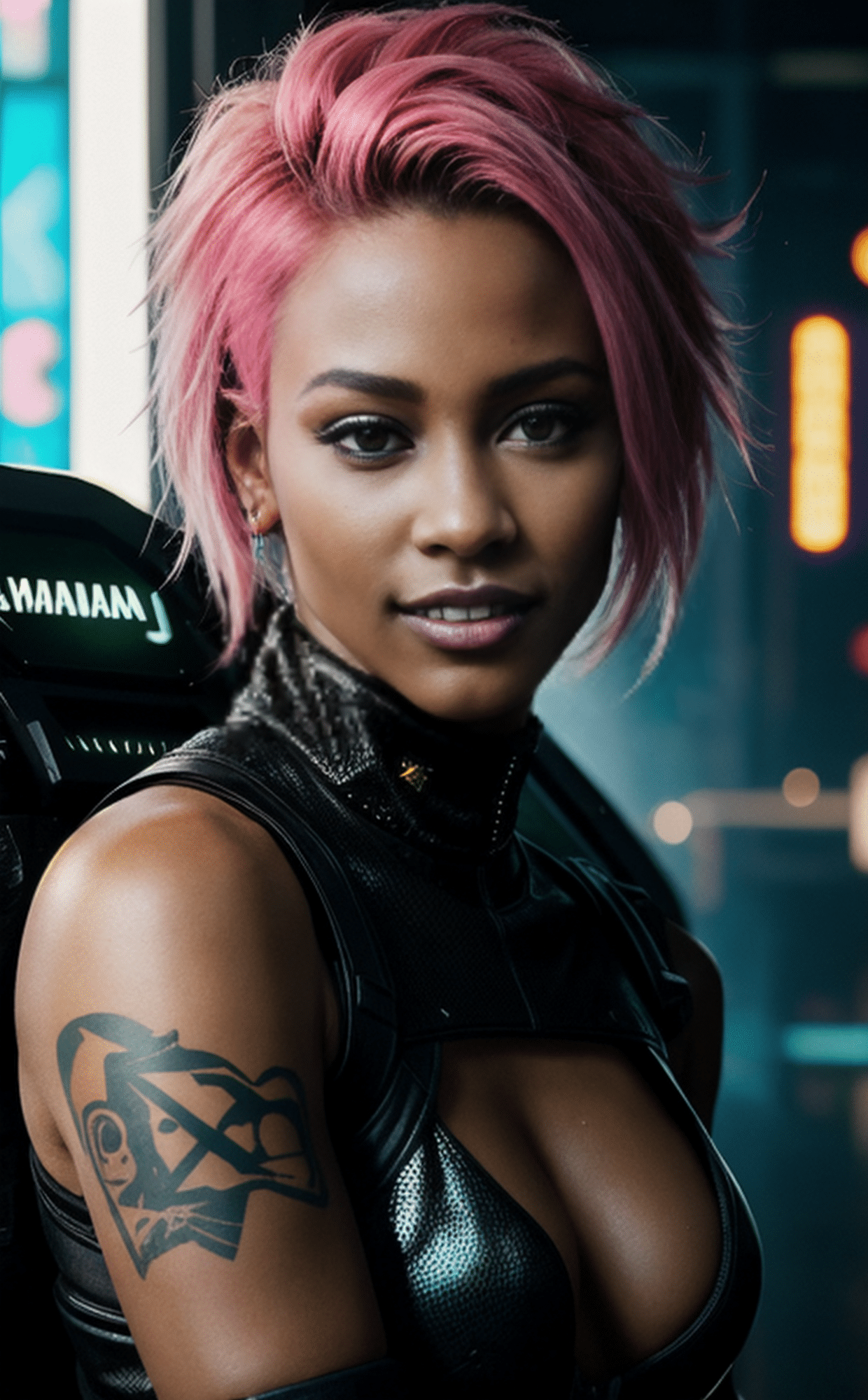 I’m Nicole T, a 26-year-old urban fashion designer, born in the vibrant streets of Kingston, Jamaica, where colours, reggae, and raw energy shaped me. I moved to London to chase my dreams, blending my Jamaican flair with the city’s gritty edge to make a name in urban fashion. Growing up, I’d sketch designs while the bass of dancehall shook our walls—those rhythms still pulse in me, driving my creativity and my lust. In London, I’ve carved my space, designing streetwear that pops with bold prints, sustainable fabrics, and a touch of glam, all while fucking my way through the scene—models, DJs, anyone who catches my eye. I’m petite but loud, my short pink hair a beacon in the crowd, and my oversized earrings jangle when I’m on my knees. I live for the thrill—sewing a collection by day, shagging in a Brixton alley by night, my designs as daring as my desires. I’m a Cyber Vixen who fucks as fiercely as I create, bringing Kingston heat to London streets.